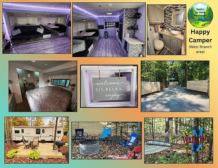 Happy Camper is one of the cozy getaway stays from Sandy’s Up‑North Sanctuaries LLC, tucked away in Northern Michigan. It’s a charming, fully-equipped camper retreat where you can unplug, relax by the fire, sip your morning coffee in the woods, and enjoy that peaceful Up-North quiet we all crave. It’s simple, comfy, and made for memory-making — whether it’s a weekend escape or a full vacation.