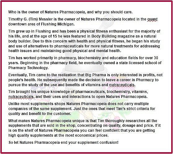 Welcome to Natures Pharmacopeia, your trusted destination for high-quality vitamins, supplements, and wellness products. We offer a carefully curated selection of top brands and natural health solutions to support your overall well-being.214 E Main St, OPEN Saturday 10am till 2pm PH# 810 365-8818